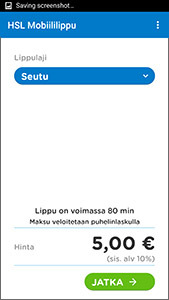 HSL Mobiililippu -sovelluksella ostettu kertalippu maksaa saman verran kuin kuljettajalta tai konduktööriltä ostettu kertalippu.