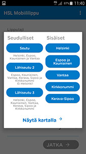 Tilaa HSL Mobiililippu sovelluksella haluamasi alueen kertalippu.